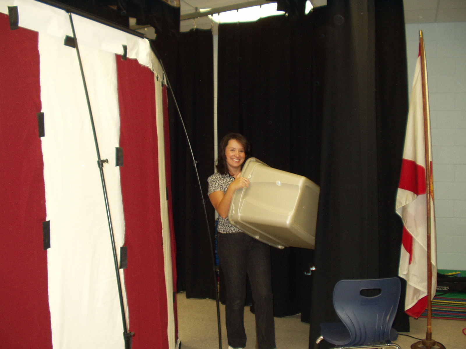 Every performance space is different. We are lucky to have a great stage here at Destin Elementary with full curtains and lights.