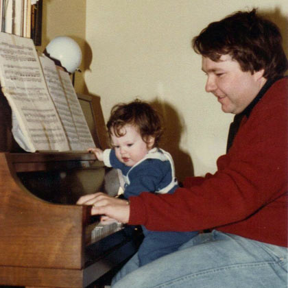 They’re not moments I can recall, but my baby book reveals my first musical experiences in photos: me as a baby, atop my dad’s lap on the piano bench.