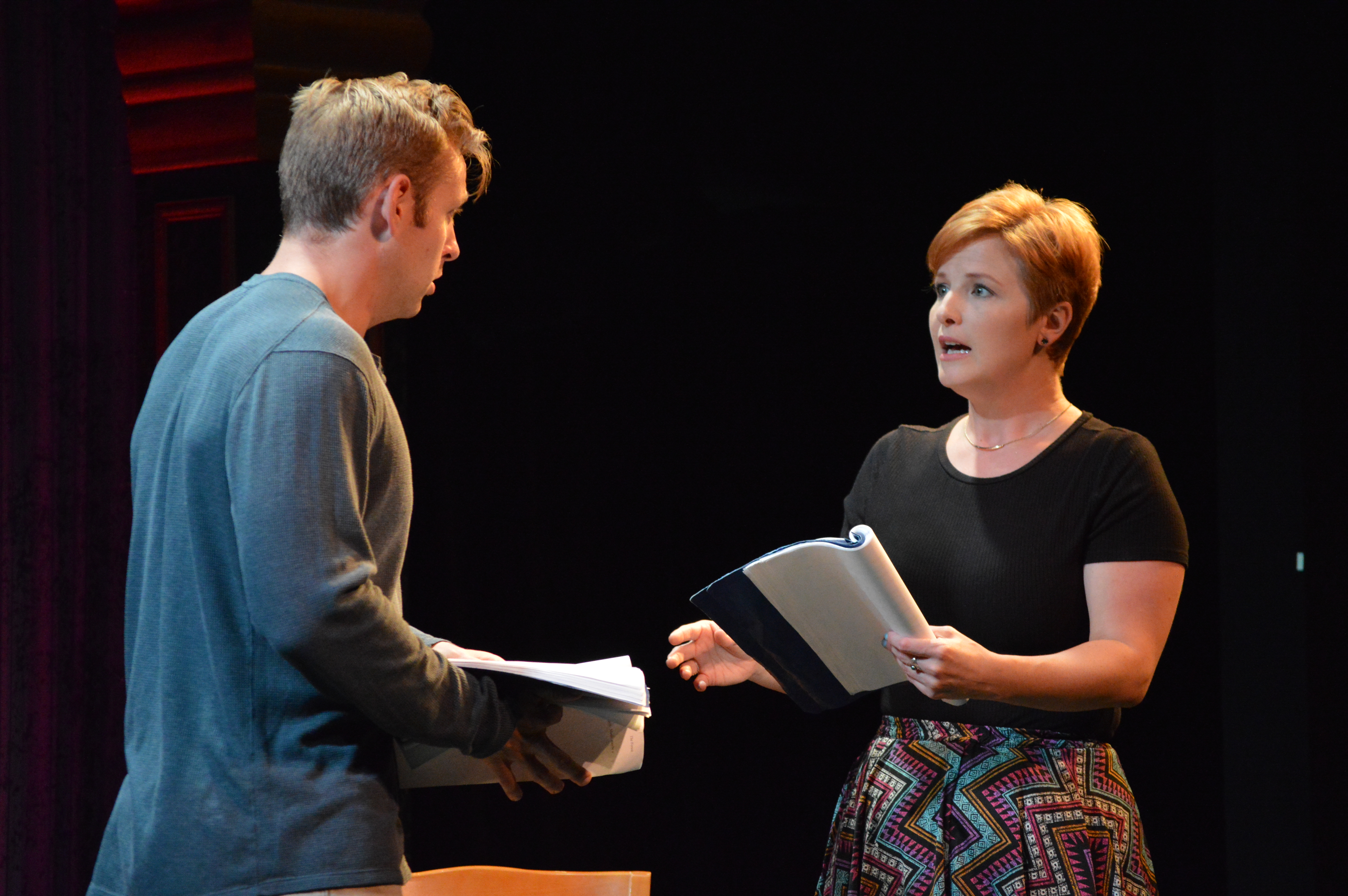 Michael Grieve and Heather Michele Lawler in NNPN Women in Playwriting Festival workshop performance of The Forest by Lia Romeo. Photo by Sarah Haley.