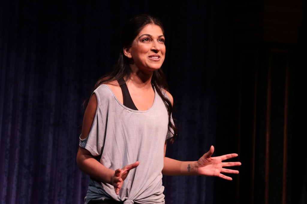 Minita Gandhi in NNPN Women in Playwriting Festival workshop performance of MUTHALAND by Minita Gandhi. Photo by Sarah Haley.