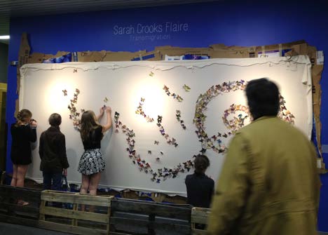 "Prayers for a Transformation" visitors pinning butterflies at the MOSH.
